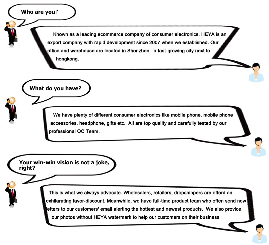We strongly believe that we live on quality, prices and services. We have the spirit of the principle of the supremacy of customers and treat every customer as high priority. "Everyone need make money" is a slogan marked in all HEYA staff's mind. Many well-designed policies are offered to help our customers grow promptly and keep a long-term relationship. We are always with an open mind to accept any criticism and suggestions from our customers.